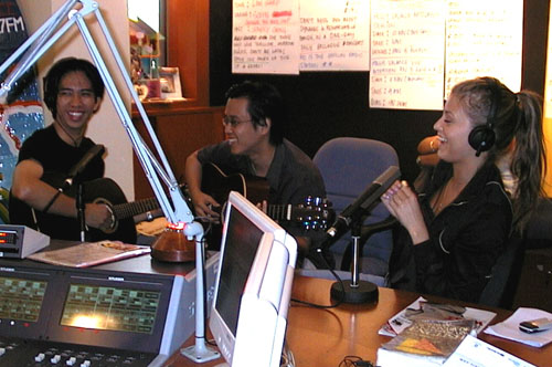 peforming "Down Boy" live and acoustic on Singapore radio breakfast show with Holly, she looked good in the morning too! |